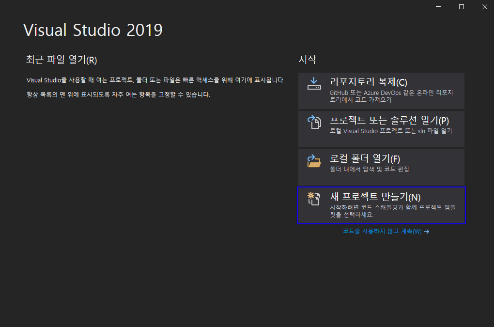 새 프로젝트 만들기를 눌러주세요.