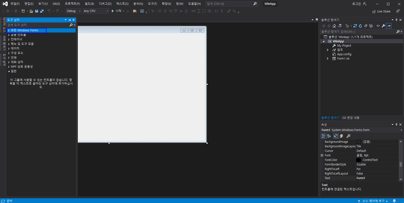 이렇게 뜨는데 여기에 모든 Windows Form을 누르시면